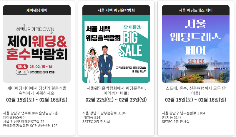 - 특징: 결혼식 & 혼수 패키지 박람회