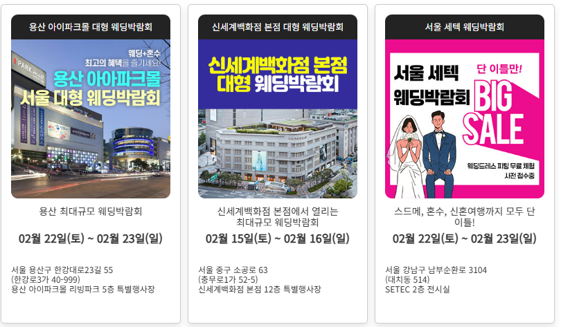 - 특징: 용산 지역 최대 규모 웨딩박람회