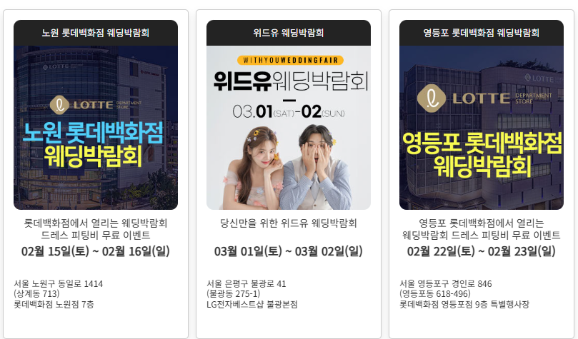 - 특징: 백화점 내 최대 규모 웨딩박람회