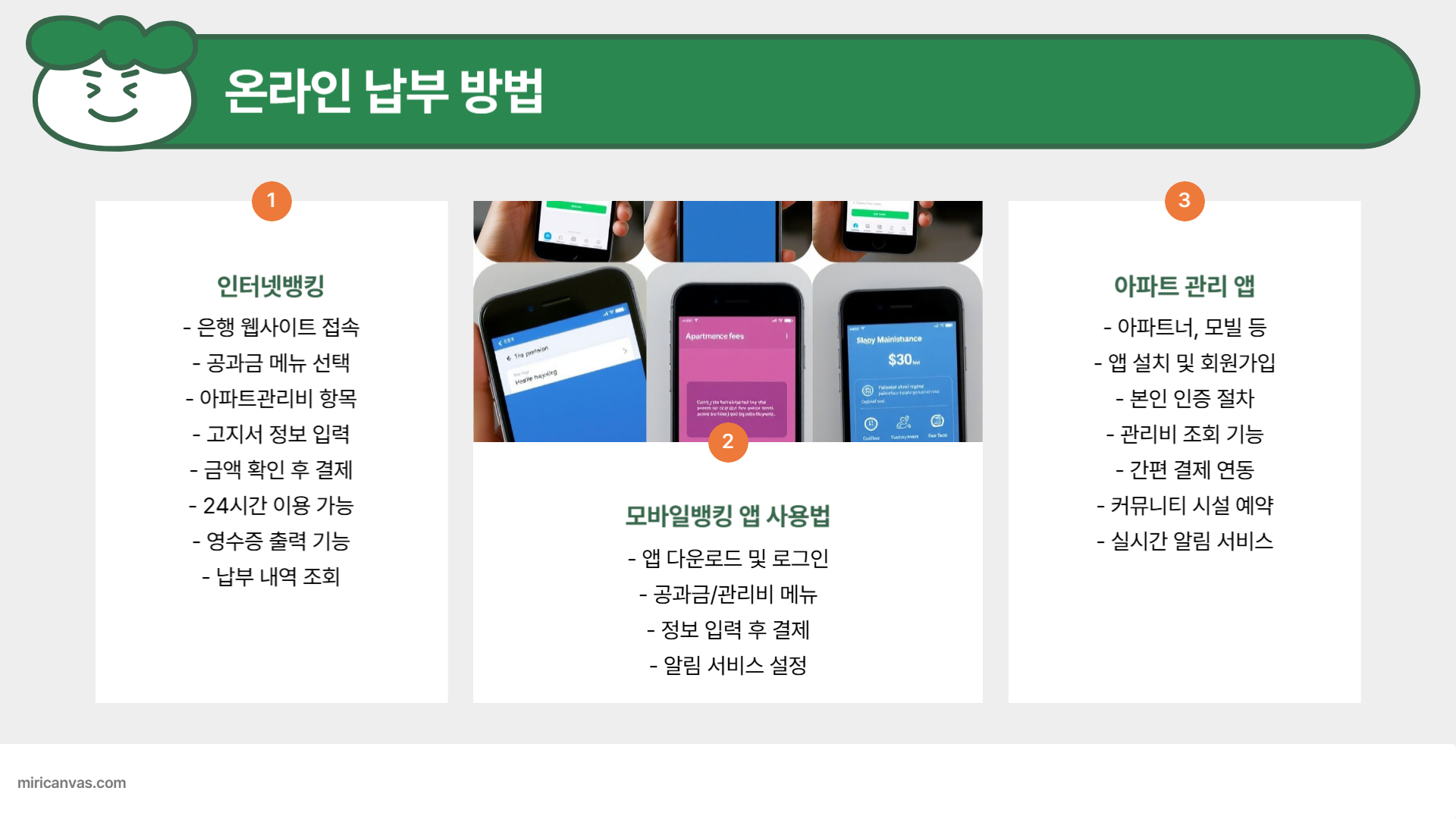 이제 자신에게 가장 적합한 방법을 선택하여 편리하게 아파트 관리비를 납부하세요! ✅