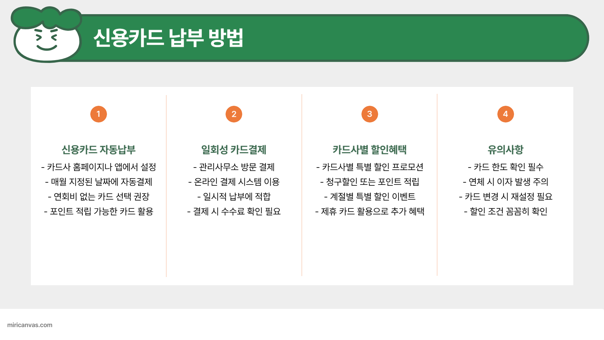 - 포인트 적립과 할인 혜택을 받고 싶다면 → 카드결제 추천